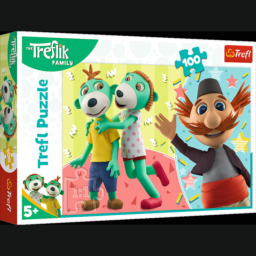 Пазли, що складаються зі 100 елементів, призначені для всіх шанувальників і любителів мультфільму "Родина Трефликів". Після складання пазлу буде створена картинка розміром 410x275 мм. Виріб виготовлено з якісних матеріалів з використанням спеціального каландрового світловідбиваючого паперу, який полегшує складання. Виріб вироблено в Польщі, для виробництва використовувалися екологічні матеріали.