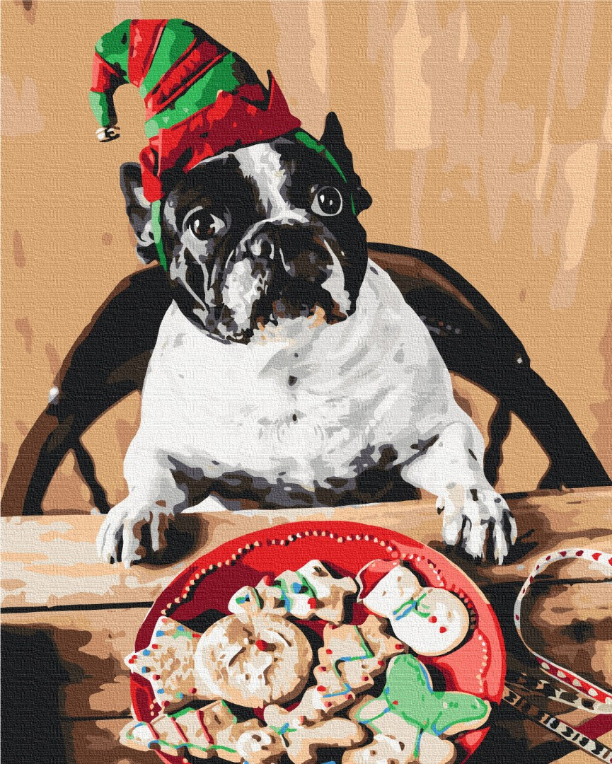 Опис Картина за номерами BrushMe "Мопс помічник Санти" 40х50см BS52775