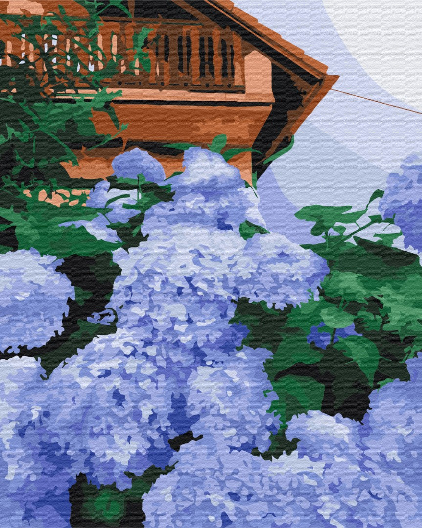 Опис Картина за номерами BrushMe "Гортензія біля дому" 40х50см BS52751