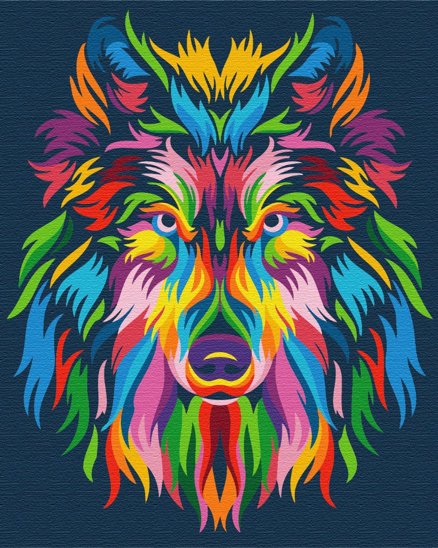 Опис Картина за номерами BrushMe "Райдужний вовк" 40х50см BS23828