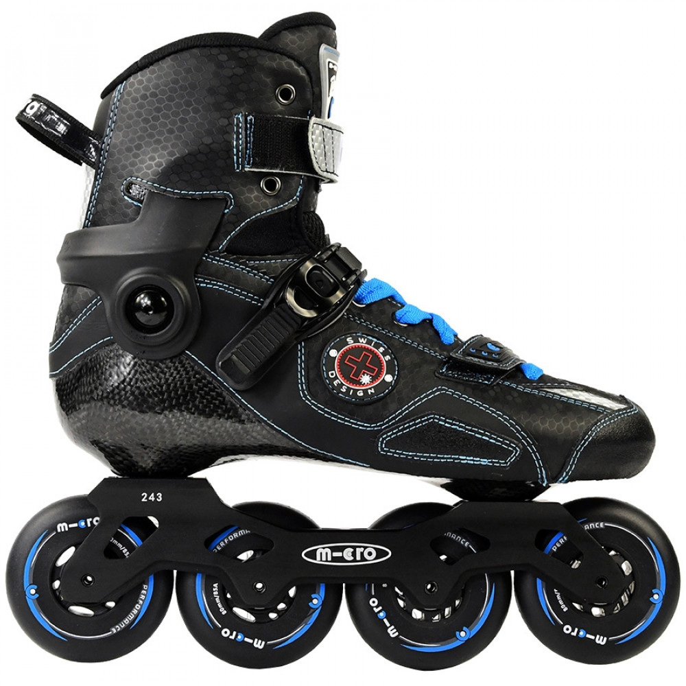 Micro Delta – високоякісні ролики для слалому. Підходять як чоловікам, так і жінкам. Інтегрований черевик з верхом з мікроволокна щільно охоплює стопу, щоб гарантувати надійну фіксацію гомілковостопного суглоба. Основу з вуглеволокна можна підігнати під індивідуальні особливості стопи завдяки термоформуванню. Знімний каф ідеально прогинається вперед і забезпечує бічну фіксацію. Легка та міцна алюмінієва рама та жорсткі колеса витримують великі навантаження та вагу райдера. Ремінь на гомілки, бакля п'яти під 45° і ремінь в області склепіння стопи фіксують ногу в правильному положенні.