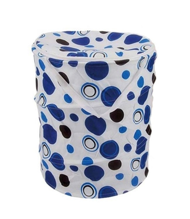 Характеристики товару Кошик для зберігання іграшок та речей текстильний UKC 42х48 см Білий з синіми горошинами