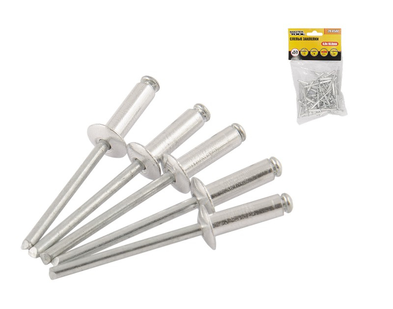 Сліпі алюмінієві заклепки 4,0*18,00 мм, 50 шт MASTERTOOL GM (20-0580) - це елементи кріплення, розроблені для надійного і міцного з'єднання листових матеріалів та інших компонентів.