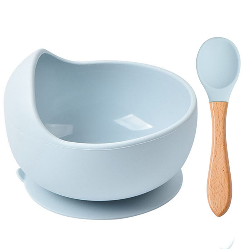 Набір силіконового посуду 2Life Y5 глибока тарілка та ложка Блакитний v-11570