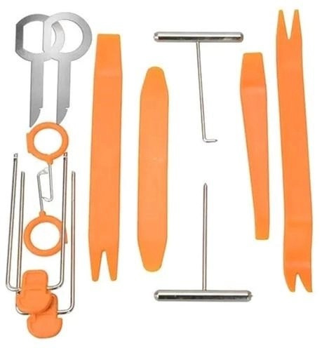 Набір з 12 пристроїв для зручного зняття пістонів, заглушок, тримачів, панелей та інших елементів при демонтажі. Комплект для швидкого та зручного демонтажу елементів салону автомобіля: пістонів, обшивки, панелей, магнітол. Складається з 12 пластикових (не подряпають/пошкодять) інструментів різної довжини та форм (лопатки, пряма, лопатка-вилка, виделки). Інструменти підходять для роботи з моделлю автомобіля.