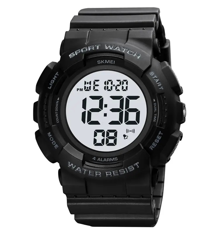 Круглий корпус зроблений із міцного пластику, який масивно виглядає і не додає зайвої ваги годинникам.