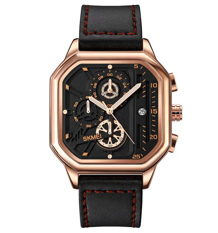 Годинник SKMEI 1963 виконаний у стильному дизайні та вдало доповнить образ сильного та впевненого в собі чоловіка. Ремінець-браслет виготовлений з натуральної шкіри та підходить для тих, хто не може носити браслети з металу. Крім того, на циферблаті відображається поточна дата. Також вбудовано додаткову функцію: секундомір. На стрілки та позначки нанесено люмінесцентне покриття, яке дозволяє визначати час навіть у темряві. Корпус виготовлений герметичним, що підтверджує стандарт 3 АТМ.