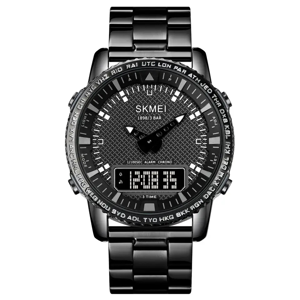 Органічне поєднання класичного форм-фактору та сучасних технологій, SKMEI 1898 готові запропонувати вам більше, ніж будь-яка з моделей-конкурентів! Годинник має як цифровий, так і аналоговий циферблат, а точність вимірювання часу гарантується японським кварцовим механізмом від Miyota. Будьте впевнені на 100% - SKMEI не дасть вам втратити жодної секунди!
