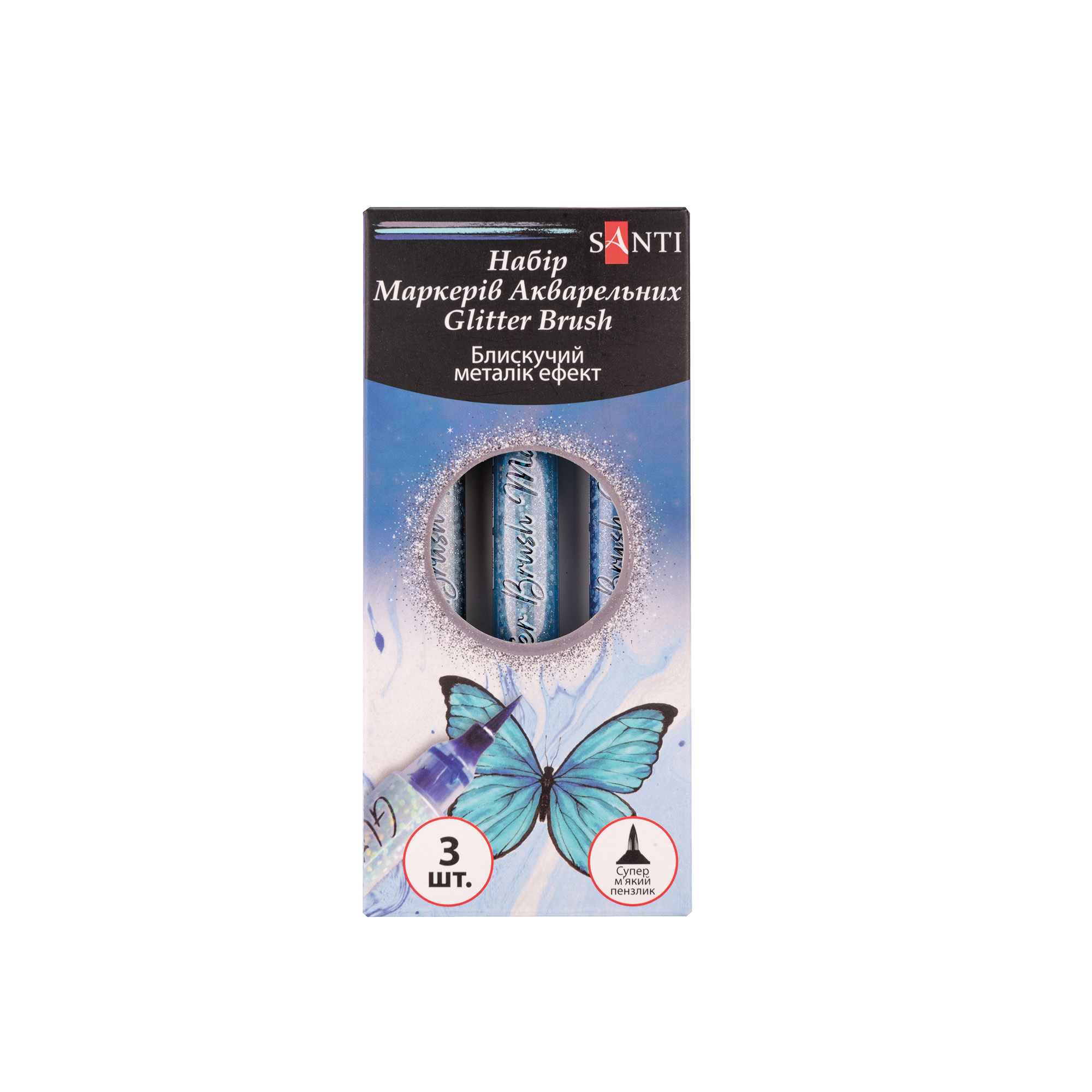 Набір маркерів акварельних Santi Glitter Brush відтінки фіолетового 3 шт/уп. (390770)