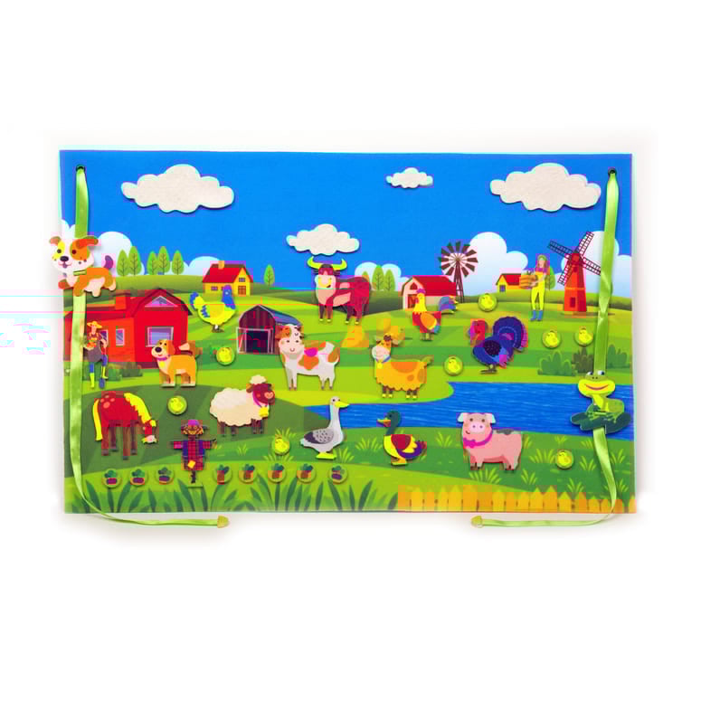 Ігровий килимок – корисний атрибут для розвитку дитини. Зручно розташувавшись, малюки за допомогою фетрових фігурок з липучками, можуть створювати різні сюжети та історії, причому щоразу різні, залежно від настрою та бачення. Використовуйте свою уяву та створюйте чудовий світ фантазій, нескінченну кількість химерних та чудових історій. Це також тактильний ресурс, який є чудовим навчальним посібником, особливо придатним для візуальних та кінестетичних стилів навчання. Килимок допоможе весело та корисно провести час, сприятиме розвитку сенсорного та зорового сприйняття, тренувати дрібну моторику, розвивати уяву та креативність. Малюкам дуже сподобається можливість переміщати персонажі та створювати свої власні сцени. Килимок простий у використанні, не створює безладдя і як тільки сюжет буде завершено, малюки можуть розпочинати все заново. Ця гра перенесе Вашого малюка у неповторний і яскравий світ тварин, що живуть у бабусі в селі, до тварин, які пробуджують з ранку замість будильника, до тварин, які дають молоко, до тварин, які грають у калюжі. Ти познайомишся з багатьма цікавими друзями. Характеристика: розмір коврика: 40 см Х 60 см матеріал: велкротканина набір фетрових фігурок на липучках фігурки вкриті фарбою, що світиться фігурки розташовуються без прив'язки до місця гра з таким набором допоможе розвинути моторику рук, координацію рухів, уяву та зорове сприйняття. методика Монтессорі простота використання * Характеристики та комплектація товару можуть змінюватися виробником без попередження