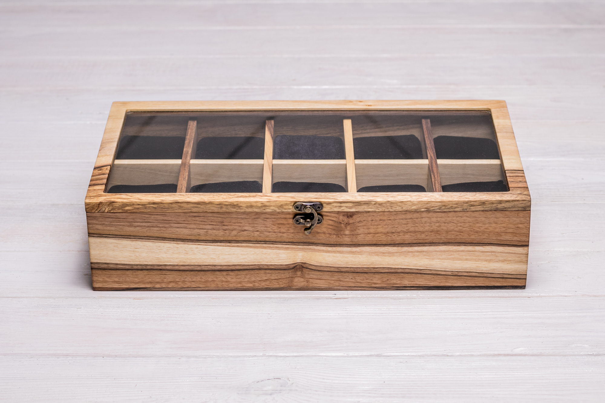Представляємо Вам серію коробочок-органайзерів для годинників на ремінцях. Високоякісне виробництво майстрів столярної справи, застосування тільки натуральних матеріалів - деревини, скла та олій, і якісна металева фурнітура роблять наш органайзер для годинників цінним і вартим подарунком для будь-якої людини, кому важливий комфорт та порядок в особистому просторі. У комплекті йде відповідна кількість подушечок із дуже м'якої тканини тому процес укладання годинників назад в органайзер вкрай приємний. Розмір комірки - 60х80х65 мм, чого більш ніж достатньо навіть для громіздких годинників.