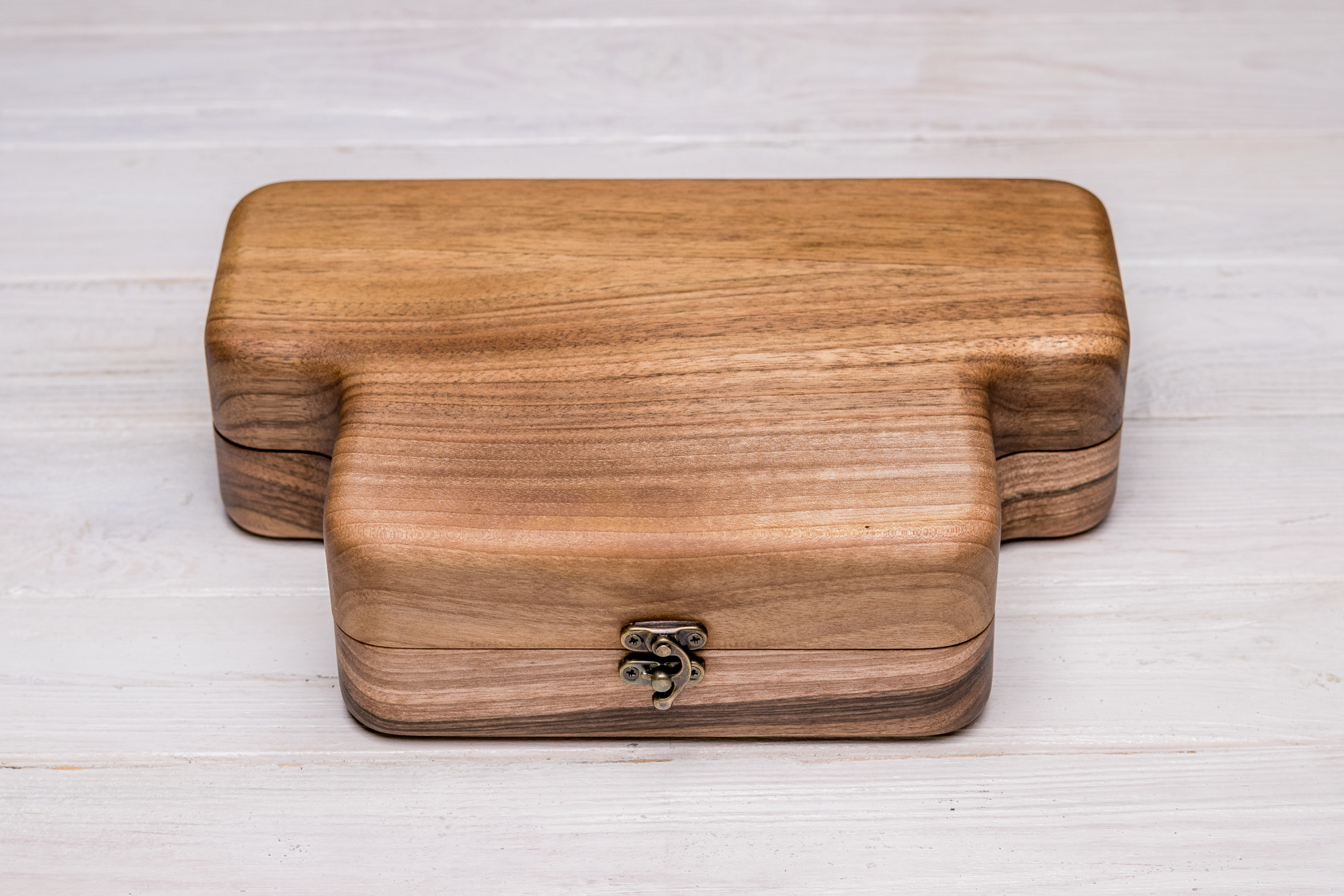 Цільні скриньки для годинників із дерев'яною кришкою є унікальними у своєму роді коробочками для зберігання Ваших наручних атрибутів! На відміну від інших коробочок для годинників нашого виробництва, які виготовлені зі склеєних між собою планок різної товщини, дані скриньки виготовлені з цільного товстого шматка обробленої деревини волоського горіха, у якому на фрезерних верстатах створені секції для зберігання Ваших годинників на подушечках. Ці скриньки наче 2 приблизно однакові за габаритами половинки, які при закриванні складаються в одне ціле, на відміну від інших коробочок, у яких об'ємна основа накривається відносно тонкою скляною або дерев'яною кришкою.