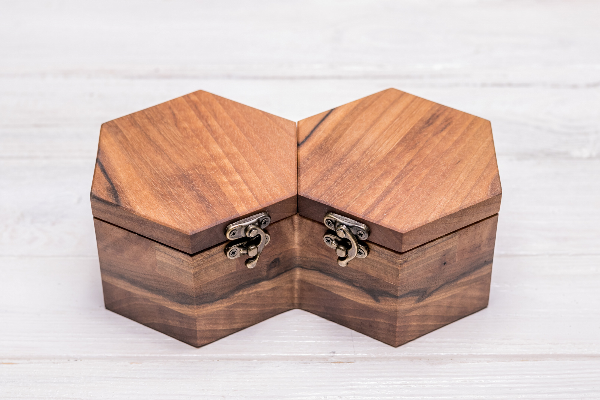 Представляємо Вашій увазі преміальні скриньки для зберігання на подушечках наручних годинників. Комбінація з бджолиних сот у залежності від кількості комірок робить виріб новим, унікальним і незвичайним органайзером . Деревина волоського горіха надає виробу преміального вигляду, якісна металева фурнітура грамотно підібрана під розмір і додає елегантності даним скринькам. Завдяки використанню ексклюзивної деревини, металевих (а не пластикових) кріплень, дорогої тканини та натуральних олій цей виріб буде дуже цінним і коштовним подарунком для будь-якої людини, котрій важливий комфорт та порядок в особистому просторі.