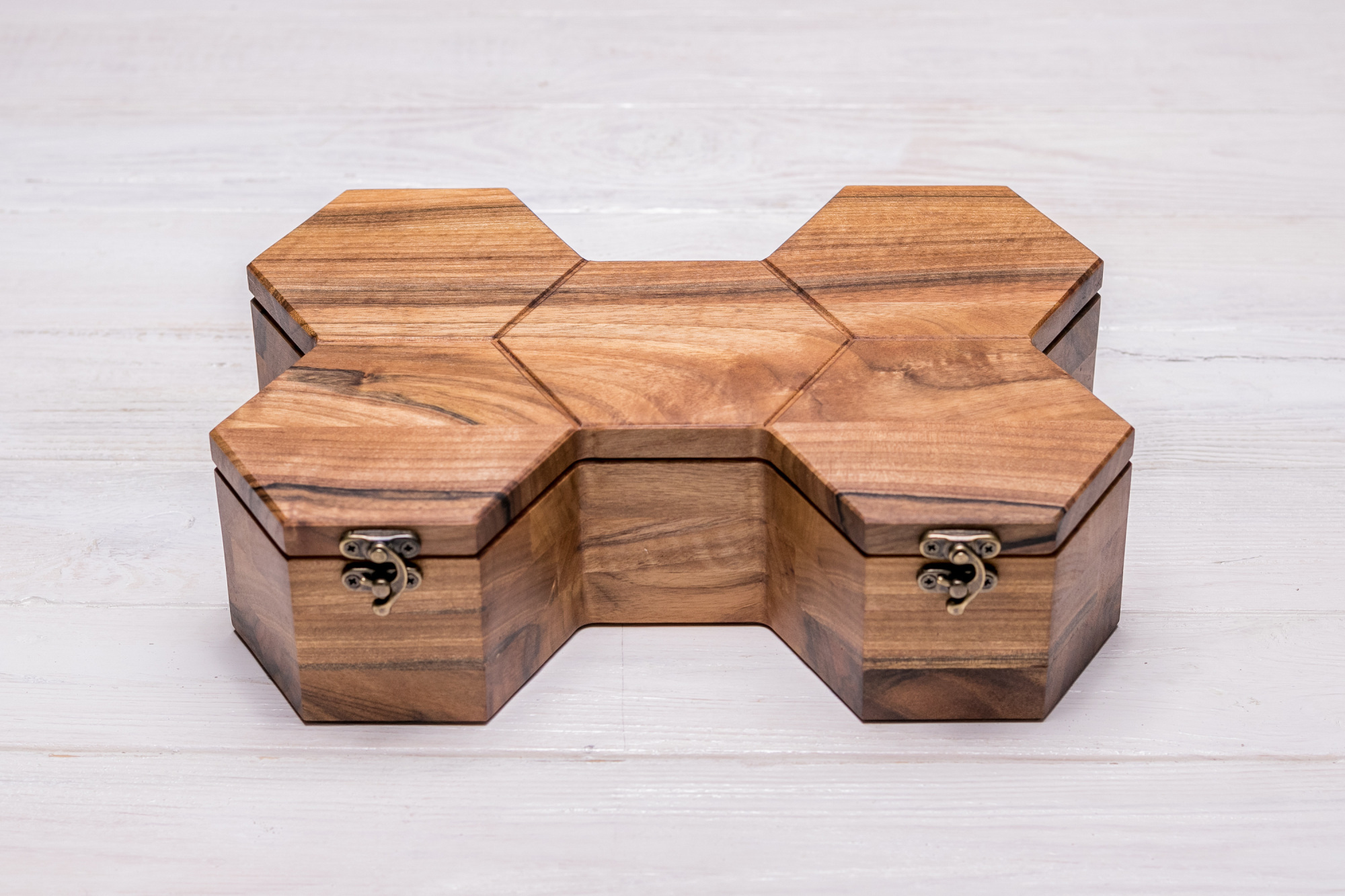 Представляємо Вашій увазі преміальні скриньки для зберігання на подушечках наручних годинників. Комбінація з бджолиних сот у залежності від кількості комірок робить виріб новим, унікальним і незвичайним органайзером . Деревина волоського горіха надає виробу преміального вигляду, якісна металева фурнітура грамотно підібрана під розмір і додає елегантності даним скринькам. Завдяки використанню ексклюзивної деревини, металевих (а не пластикових) кріплень, дорогої тканини та натуральних олій цей виріб буде дуже цінним і коштовним подарунком для будь-якої людини, котрій важливий комфорт та порядок в особистому просторі.