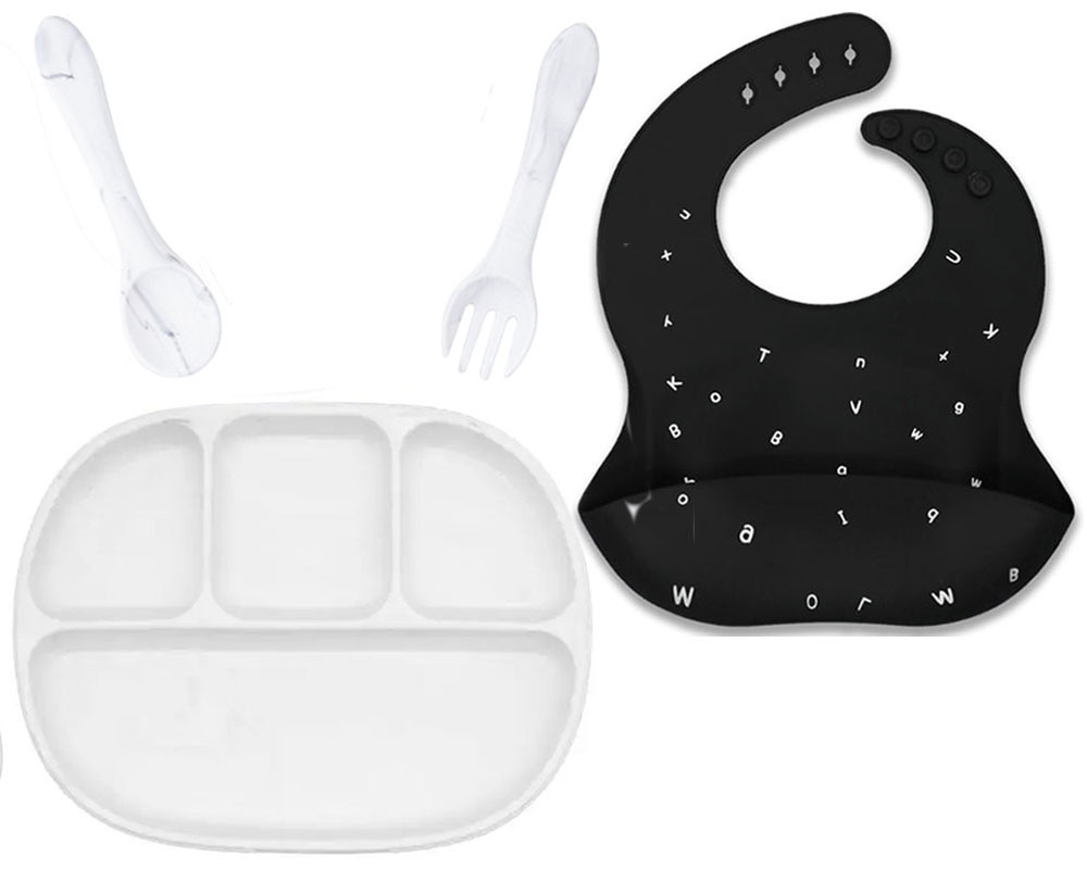Набір посуд 2Life D1 прилади Y1 та слинявчик Чорний/Білий (v-11778)