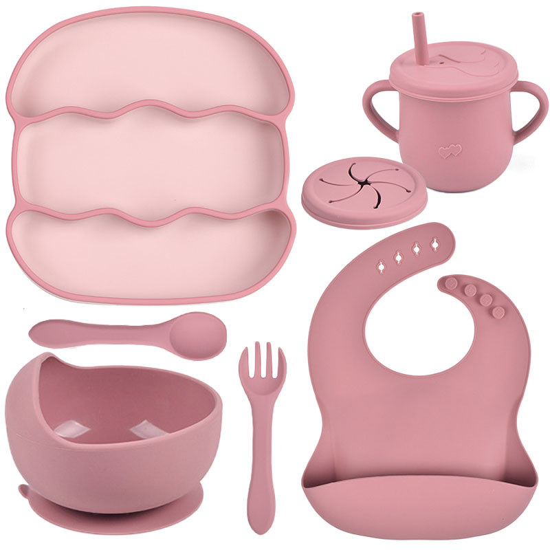 Набір силіконового посуду, розроблений і створений з урахуванням всіх вимог мам для годування дітей, складається з предметів: 1. Трисекційна силіконова тарілка 2. Кругла тарілка на присосці для перших страв 3. Силіконовий слюнявчик з регульованою застібкою та кишенею 4. Вилка 5. Ложка 6. Поильник-непроливайка 7. Змінна кришка-снечниця Набір посуду з силікону має ряд переваг та переваг перед іншими видами дитячого посуду: 1.Посуд з харчового силікону не б'ється і не має запаху 2. Представлений набір посуду має потрібні вигини для зручності при експлуатації 3.Посуд виготовлений з харчового силікону і відповідає всім міжнародним стандартам якості 4.Посуд можна стерилізувати і мити в посудомийній машині 5.Силиконовий посуд можна використовувати в духовці, в пароварці або в НВЧ 6.Силіконові тарілки: секційна та кругла постачання забезпечує стійкість посуду на столику для годування або на будь-якій іншій гладкій та чистій поверхні. 7.Весь посуд зберігає свій первісний вигляд протягом усього терміну експлуатації. Секційна силіконова тарілка із трьох секцій на присосці. У ній можна готувати їжу для дитини, поєднувати різні види продуктів за консистенцією та температурою. Тарілка забезпечена присоскою на дні і не ковзає по поверхні столика - це особливо зручно коли малюк захоче вчитися їсти самостійно, але також є виступ, що легко відчепити липучку. Тарілочка кругла силіконова на присосці, її достатньо, як для початку першого прикорму так і для подальшого годування дитини. Слюнявчик - незамінна річ під час годування малюка. Максимум комфорту для дитини та мінімум прибирання для мами. Компактний та зручний у використанні для дому, дитячого садка, поїздок, прогулянок. Не потребує прання. Нагрудник достатньо протерти ганчіркою або серветкою. Кишенька для уловлювання пролитої їжі відмінно захищає одяг від забруднень. Набір столових приладів із харчового силікону це ідеальні вилочка та ложечка для початку прикорму. Зручні та акуратні ложечка і вилочка з даного набору не пошкодять ніжні ясна, що ще не зміцніли, і перші зубики малюка навіть при натисканні на столові предмети. Особлива форма та невеликий обсяг необхідні для плавного переходу малюка від грудей до ложки. Силіконовий поїльник для дітей 3в1 чашка силіконова з ручками, снечниця, поїльник з трубочкою. Цей поильник можна видозмінити завдяки спеціальним кришкам: це може бути Навчальний поїльник, потім коли малюк підросте, він може бути Снек-стаканчиком - це як непроливайка для напоїв, тільки непросипання для печінок, ягід, фруктів та багато іншого. А коли малюк навчиться пити та їсти самостійно поїльник стане Універсальною чашкою для різних напоїв. Наша рекомендація: перед використанням промити теплою водою з додаванням нейтрального миючого засобу. Про різницю у кольорі: Всі товари зроблені на натуральних фотографіях. Через різні монітори та освітлення під час зйомки, факторів навколишнього середовища тощо, є невелика різниця в кольорі, яка об'єктивна і її не можна уникнути! Хроматична аберація не є проблемою якості.
