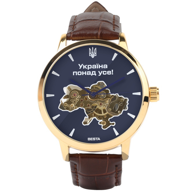 Годинник наручний чоловічий BESTA Skeleton UA Коричневий