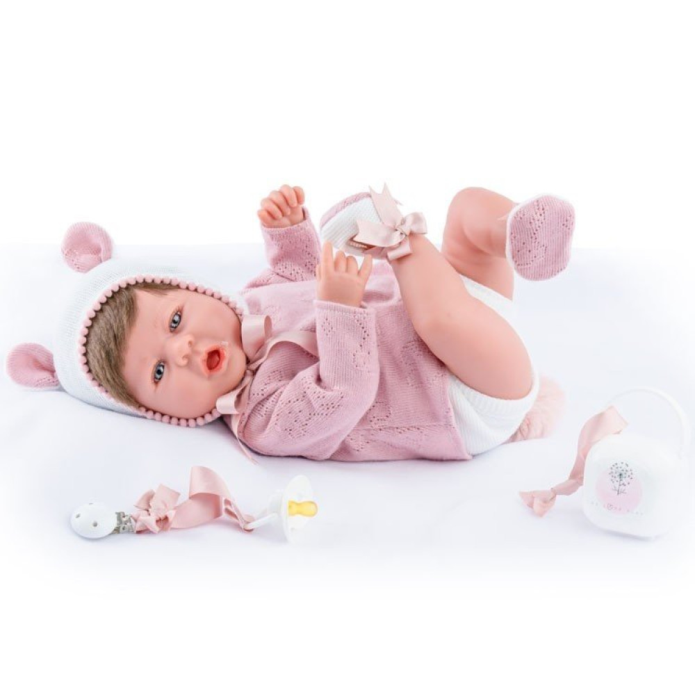 - Іспанська якість: Marina & Pau - відомий іспанський бренд, що славиться своєю увагою до деталей та високих стандартів якості. Вініл, з якого виконана лялька, м'яка на дотик і довговічна, що робить її не тільки красивою, а й практичною. Тіло іграшки виготовлене з м'якого котону, що робить ляльку ідеальною для обіймів та сну.