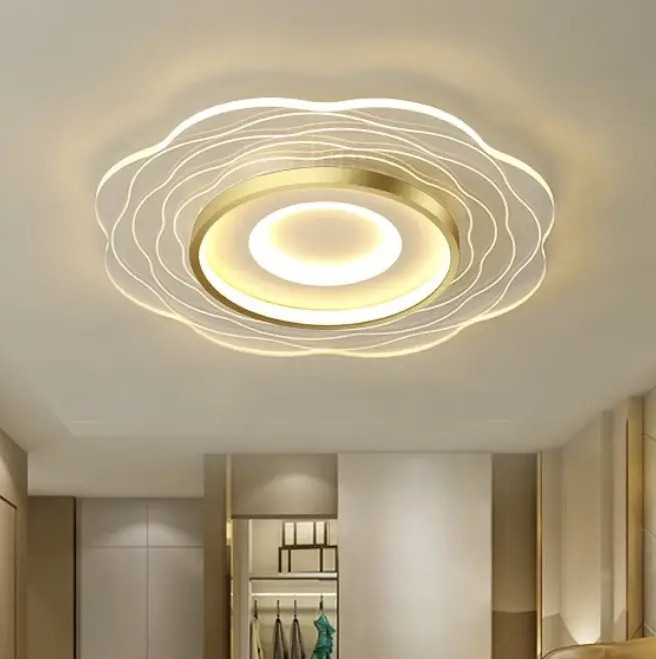 - Дизайн: Каскадні кола із золотистими акцентами створюють ілюзію руху та надають глибину будь-якому простору.