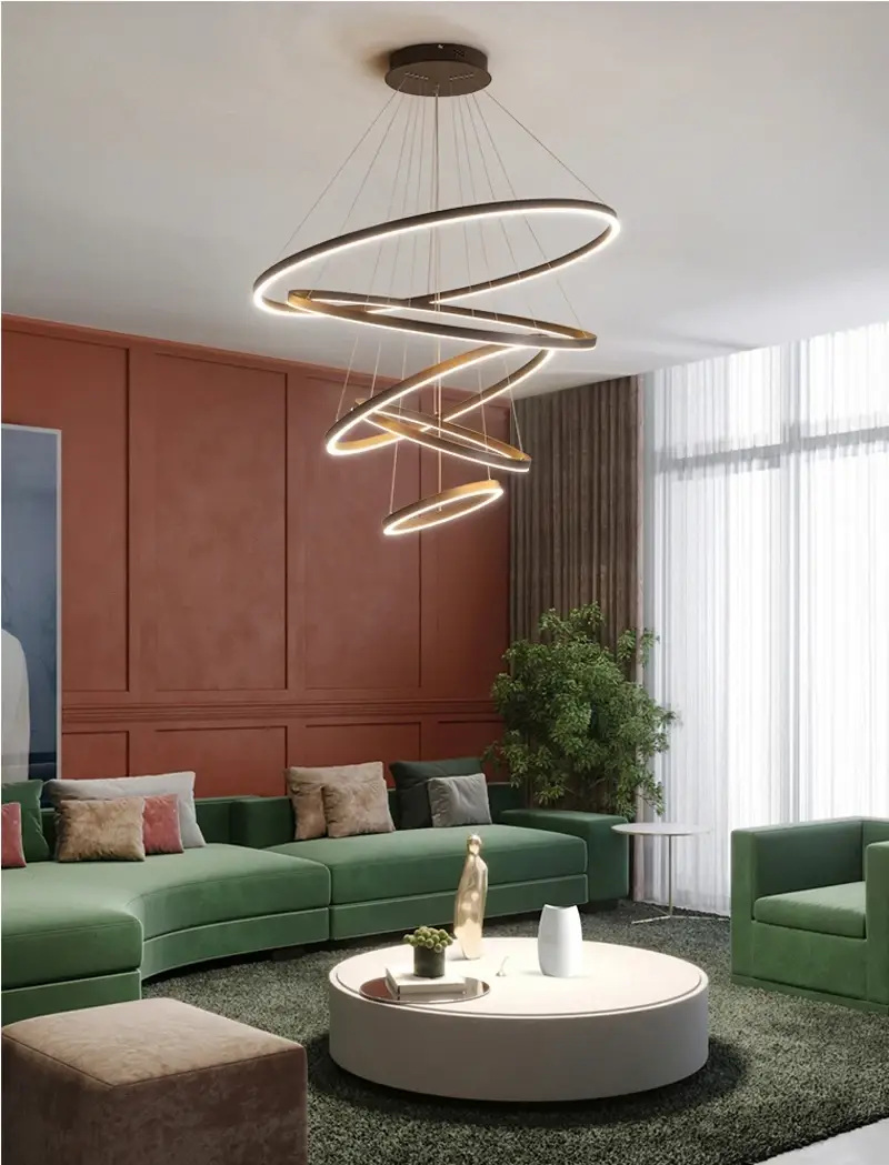 Оживіть простір із цією сучасною та стильною світлодіодною люстрою, яка миттєво привертає увагу своєю унікальною концентричною формою. Виконана з високоякісних матеріалів, ця люстра поєднує в собі естетичну красу та функціональність, що ідеально підходить для сучасних віталень, спалень або офісних просторів.