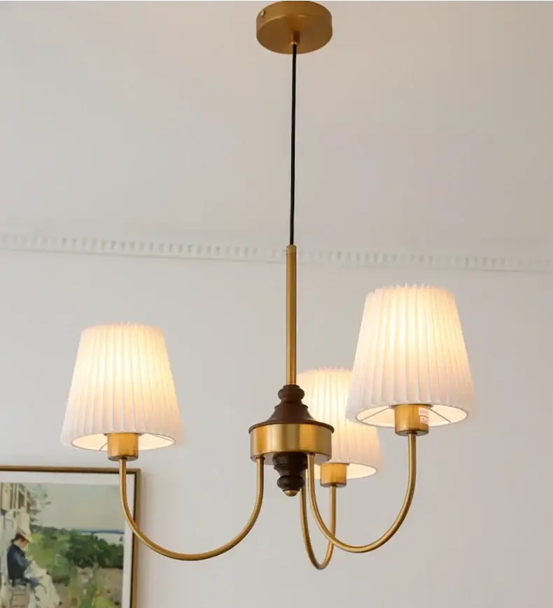• Дизайн: Елегантна конструкція з білими абажурами та золотистою обробкою створює розкішний та сучасний вигляд, що відразу привертає увагу.
