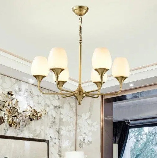 Абажури, виготовлені з матового скла, забезпечують затишне розсіяне світло, ідеальне для створення релаксуючої атмосфери в житловому просторі. Ця люстра може стати гарним доповненням як класичного інтер'єру з багатими орнаментами, так і більш мінімалістичного і сучасного дизайну, надаючи йому елемент традиційної розкоші.