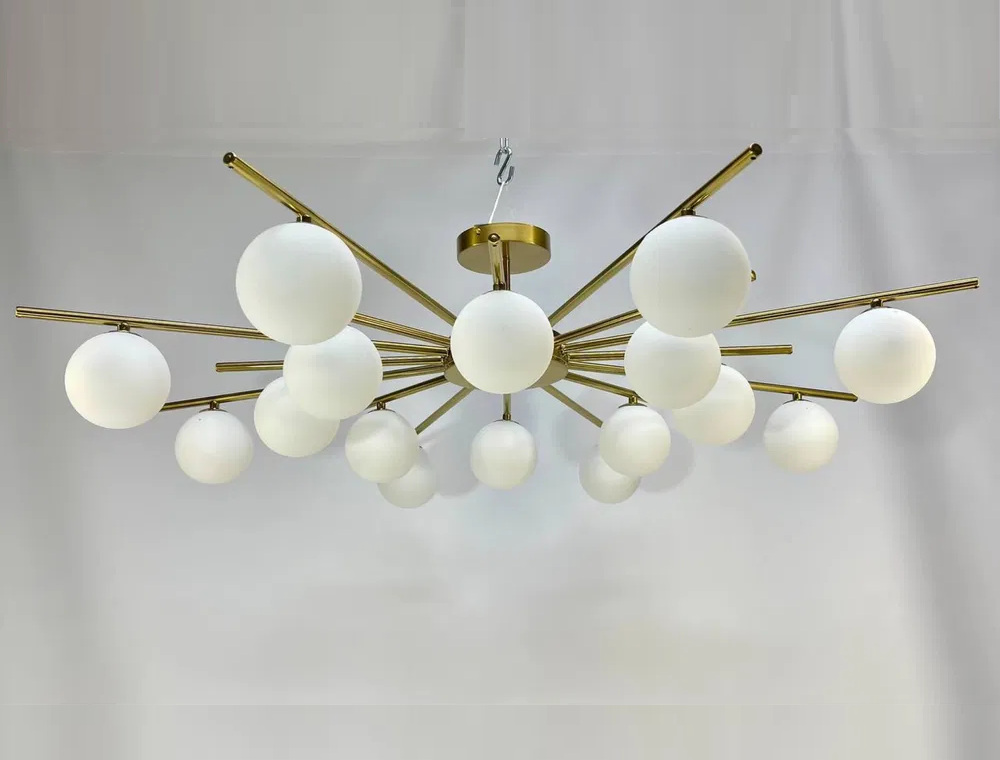 - Дизайн: Елегантна конструкція з матовими білими кульками і золотистою обробкою конструкції створює розкішний і сучасний вигляд, що відразу привертає увагу.
