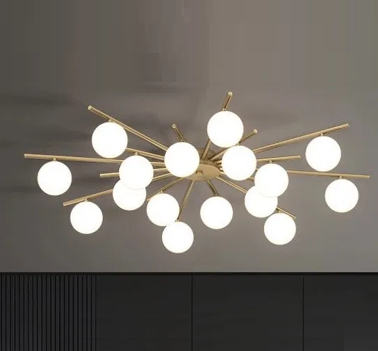 - Дизайн: Елегантна конструкція з матовими білими кульками і золотистою обробкою конструкції створює розкішний і сучасний вигляд, що відразу привертає увагу.
