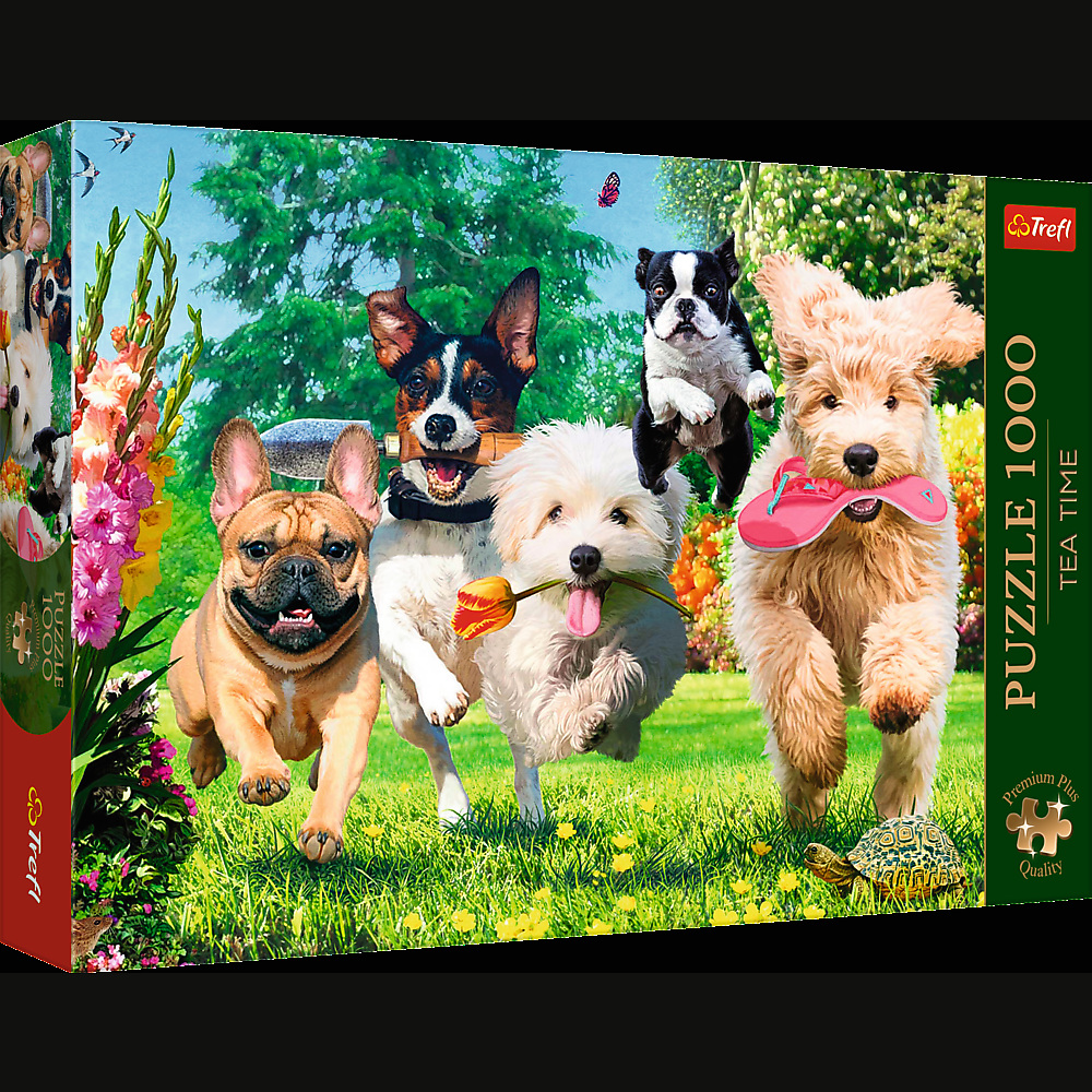 Puzzle Trouble наближається! вони зображують чудових собак, упійманих під час бігу. Після їх упорядкування буде створено зображення розміром 683×480 мм.