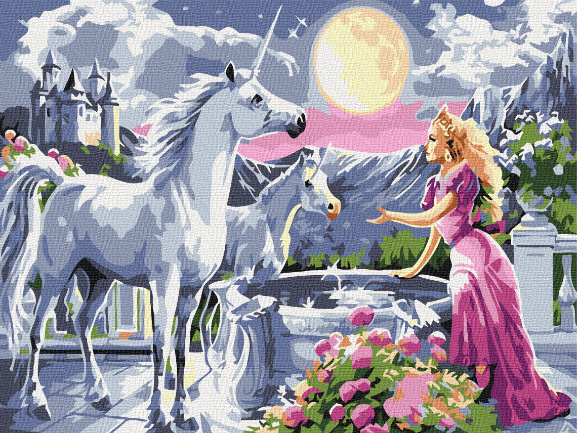 Опис Картина за номерами Brushme Принцеса та єдинороги 30х40 см Різнокольоровий RBS25996