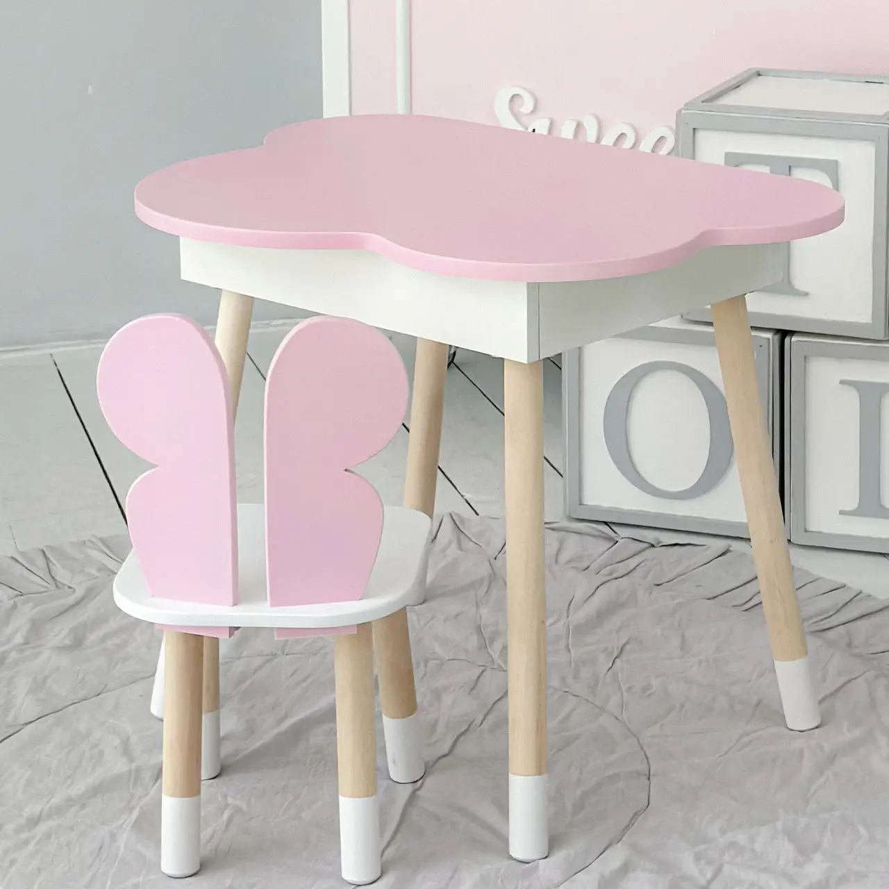 Стіл дитячий No Brand Хмарка з нішою та стільчиком Метелик Біло-рожевий (2389193884)