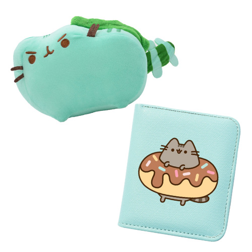 М'яка іграшка Pusheen Cat Dragon У формі котика Пушина, стилізованого під дракона. Має світло-зелений колір зі смугастим хвостом, крильцями та ріжками. Виглядає дуже кумедно і ідеально підходить як подарунок або декор. Гаманець із зображенням Пушина на пончику Компактний прямокутний гаманець блакитного кольору. На зовнішній стороні зображений Пушин, який сидить на рожевому пончику з глазур'ю. Підходить для зберігання карток, монет чи інших дрібниць. Ці предмети складають відмінний набір для шанувальників Пушина або тих, хто любить милі аксесуари! Про різницю в кольорі: Всі товари зроблені на натуральних фотографіях. Через різні монітори та освітлення під час зйомки, факторів навколишнього середовища тощо, є невелика різниця в кольорі, яка об'єктивна і її не можна уникнути! Хроматична аберація не є проблемою якості. Законом про захист прав споживачів не передбачено повернення цього товару належної якості.