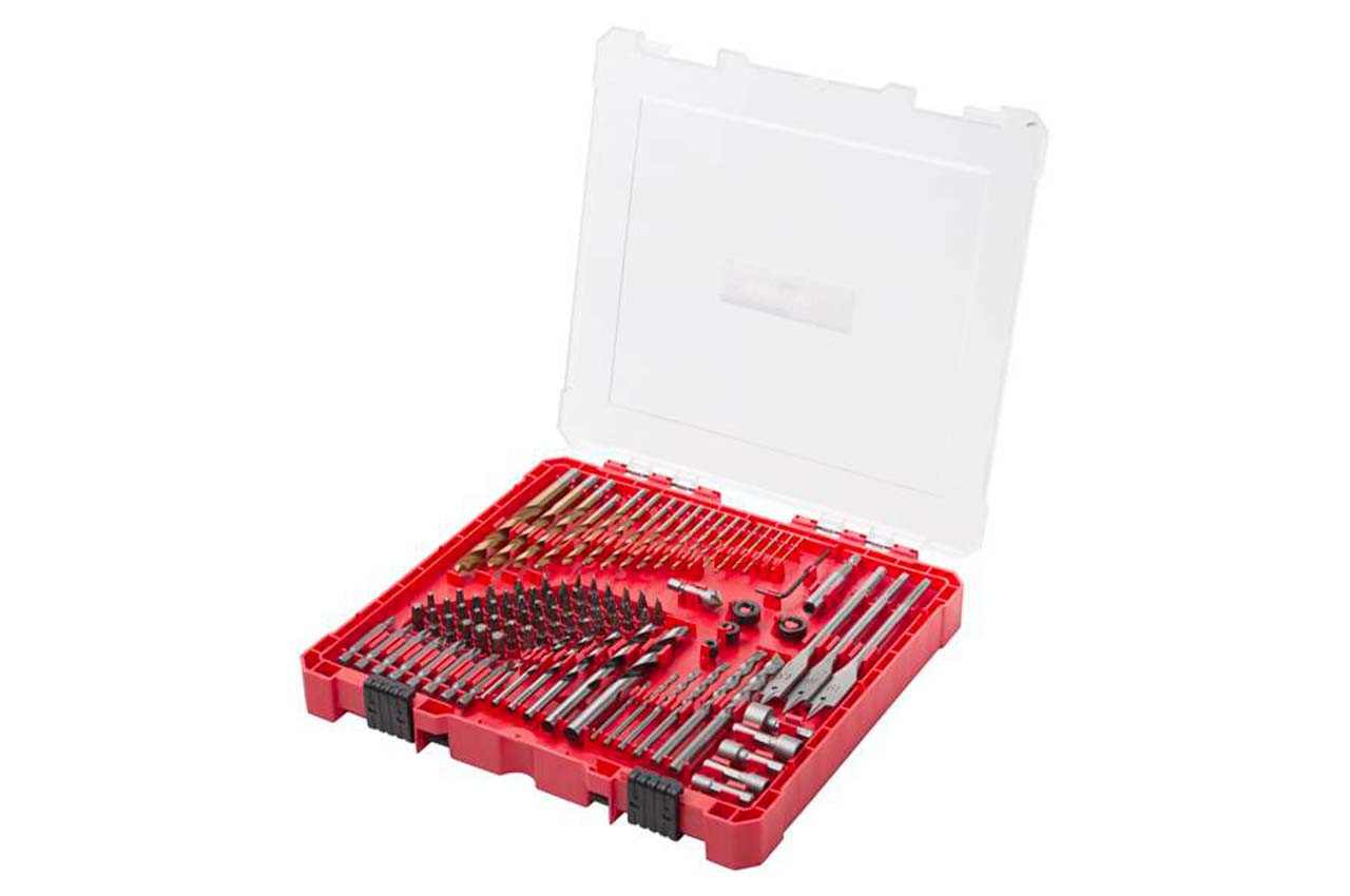 Універсальний набір містить різні види свердел для роботи з каменем, бетоном, пластиком, металом, деревом, також містить біти, зенківку та магнітний тримач. Набір містить: - Свердла по металу, виготовлені з якісної HSS сталі з твердістю 60-63 HRC - Свердла по дереву, каменю, а також зенківка та магнітний тримач виготовлені з універсальної сталі C45 - Обмежувачі свердла з міцної сталі А3 - Викруткові біти та торцеві насадки виготовляються зі зносостійкої та довговічної Cr-V сталі Свердла та насадки розміщені у зручному та міцному пластиковому кейсі з замками.