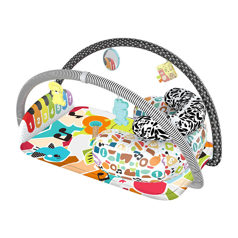 Яскраві брязкальця та підвісні іграшки стимулюють дитину тягнутися, хапати та маніпулювати предметами, що розвиває дрібну моторику. Килимок спонукає малюка перевертатися, повзати і сидіти, зміцнюючи м'язи та розвиваючи також велику моторику.