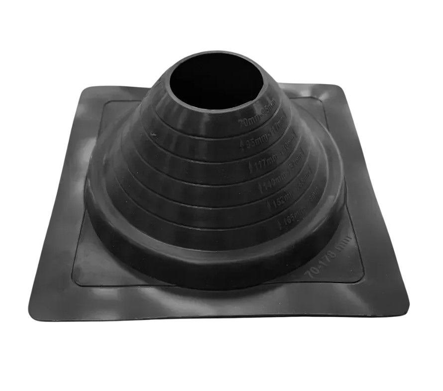 Майстер Flash прямий чорний (70 -180 мм) — призначений для монтажу димоходів у покрівлях із ухилом до 20 градусів. Такий покрівельний ущільнювач запобігає потраплянню атмосферних опадів у місцях проходу димохідних труб через покриття. Монтаж-флеша простий і зручний, для цього досить обрізати виріб до необхідного діаметра, щільно одягнути на трубу, прикріпити до покрівлі герметиком і саморізами. Цей ущільнювач витримує температури приблизно 280 градусів, виготовлений із м'якого силікону та має довгий термін експлуатації.