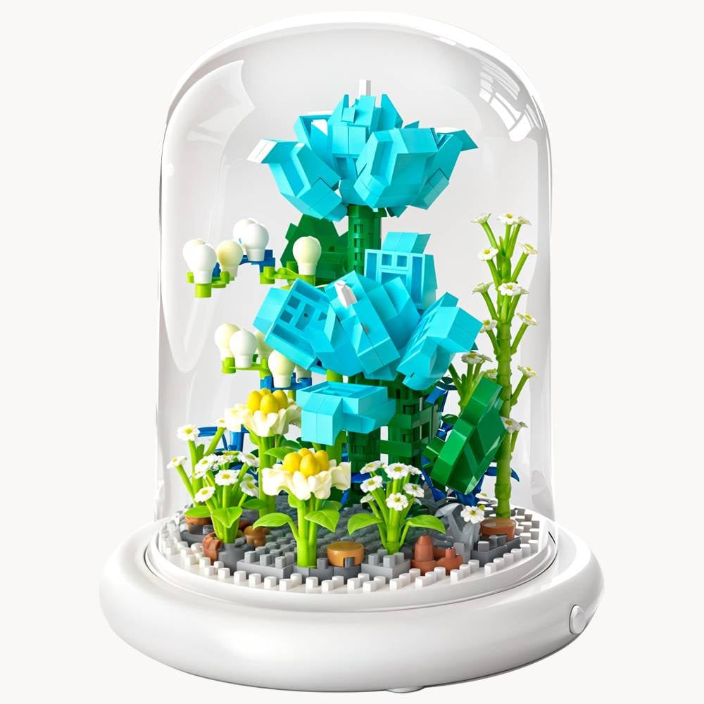 Функціональність: зібраний конструктор послужить елегантним декором в інтер'єрі, а завдяки колбі квітка не припадатиме пилом і потребуватиме мінімум зусиль для догляду та підтримання чистоти.