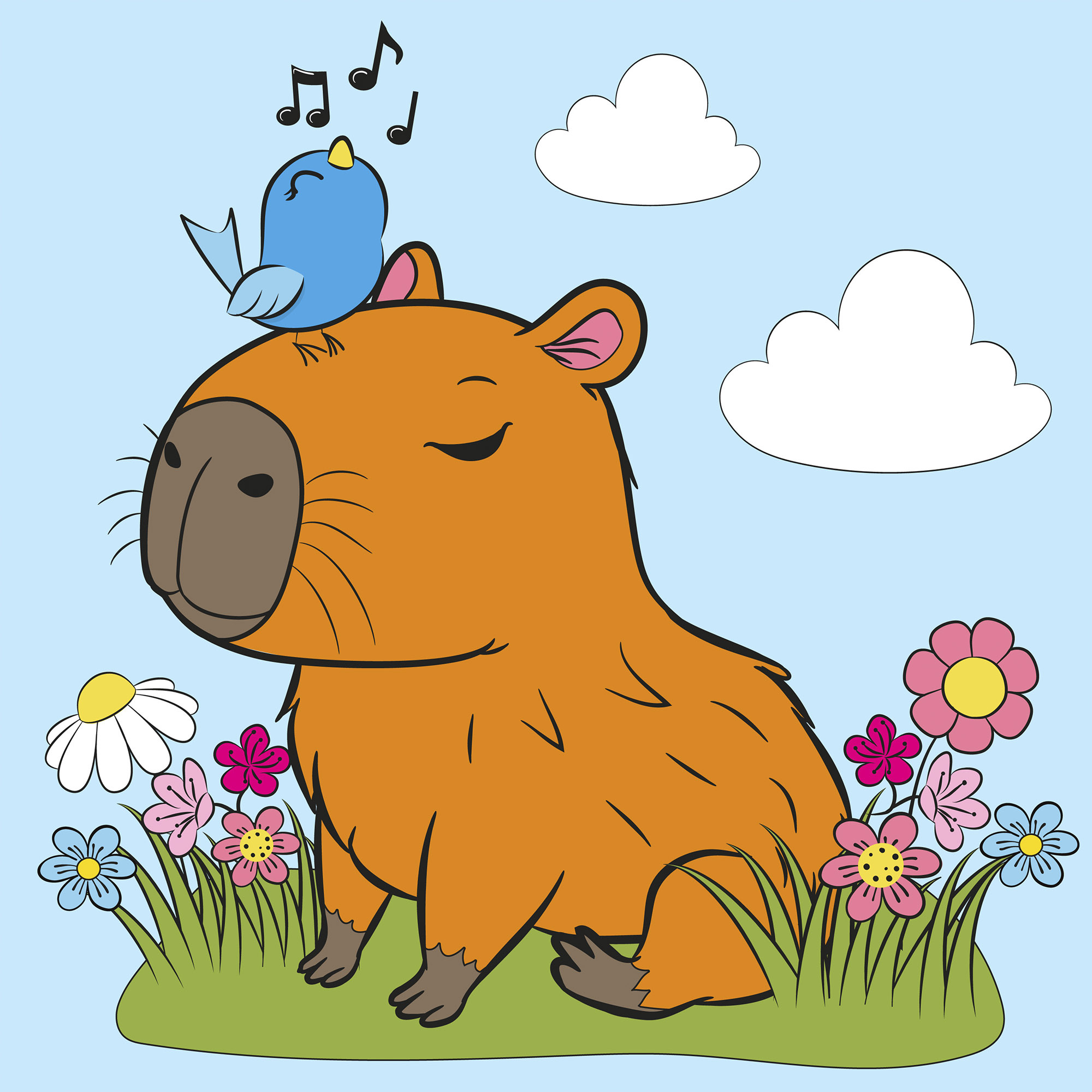 Характеристики товару Картина за номерами Santi Капібара з пташкою 25х25 см Різнокольоровий (955479)