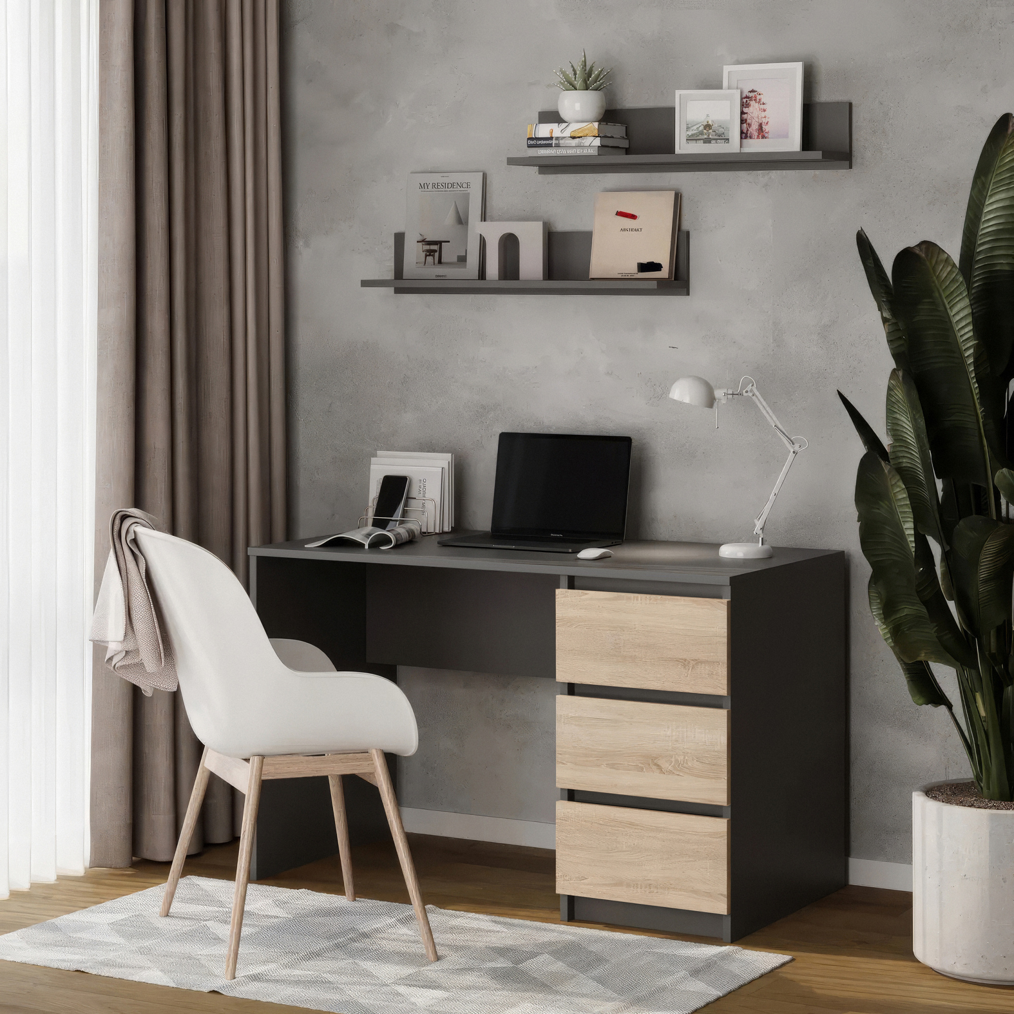 Письмовий стіл на 3 шухляди без ручок No Brand FT-224 Left 1200х600х750 мм Дуб Сонома-антрацит (24766813)