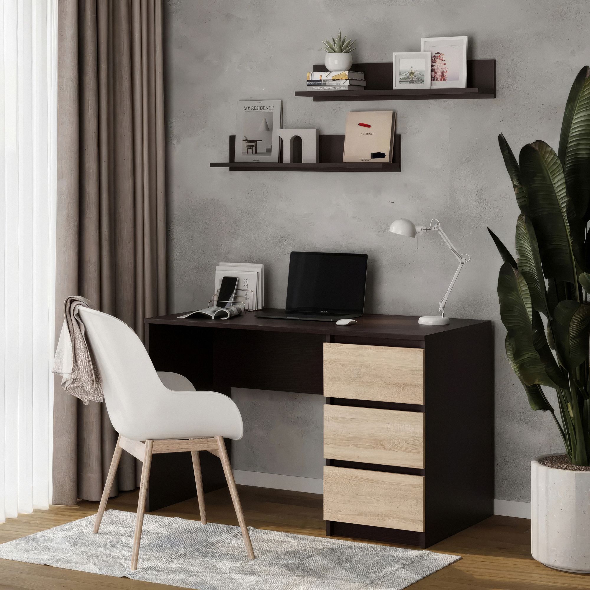 Письмовий стіл на 3 шухляди без ручок No Brand FT-224 Left 1200х600х750 мм Венге Магія-Дуб Сонома (25193603)