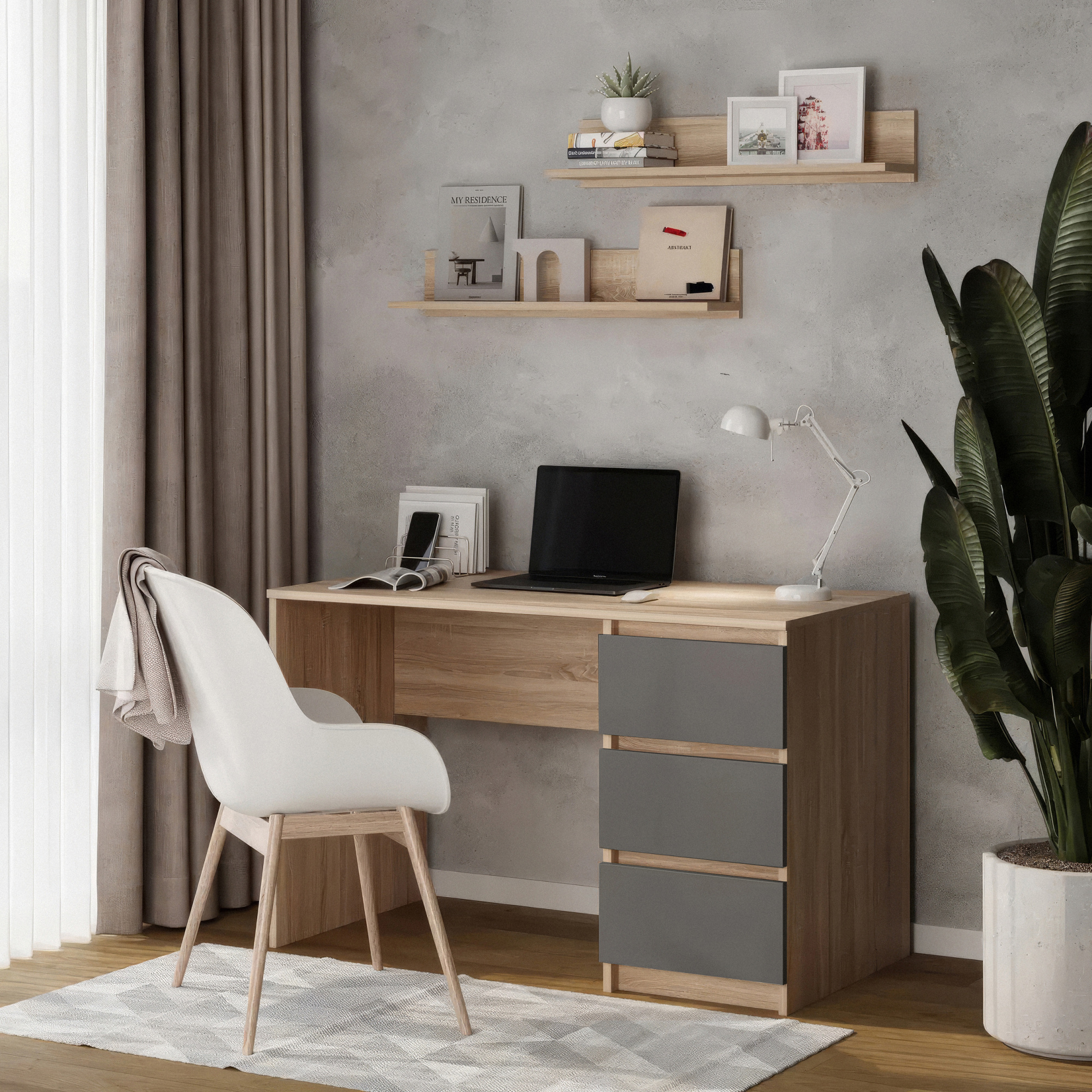 Письмовий стіл на 3 шухляди без ручок No Brand FT-224 Left 1200х600х750 мм Антрацит-Дуб Сонома (12934467)