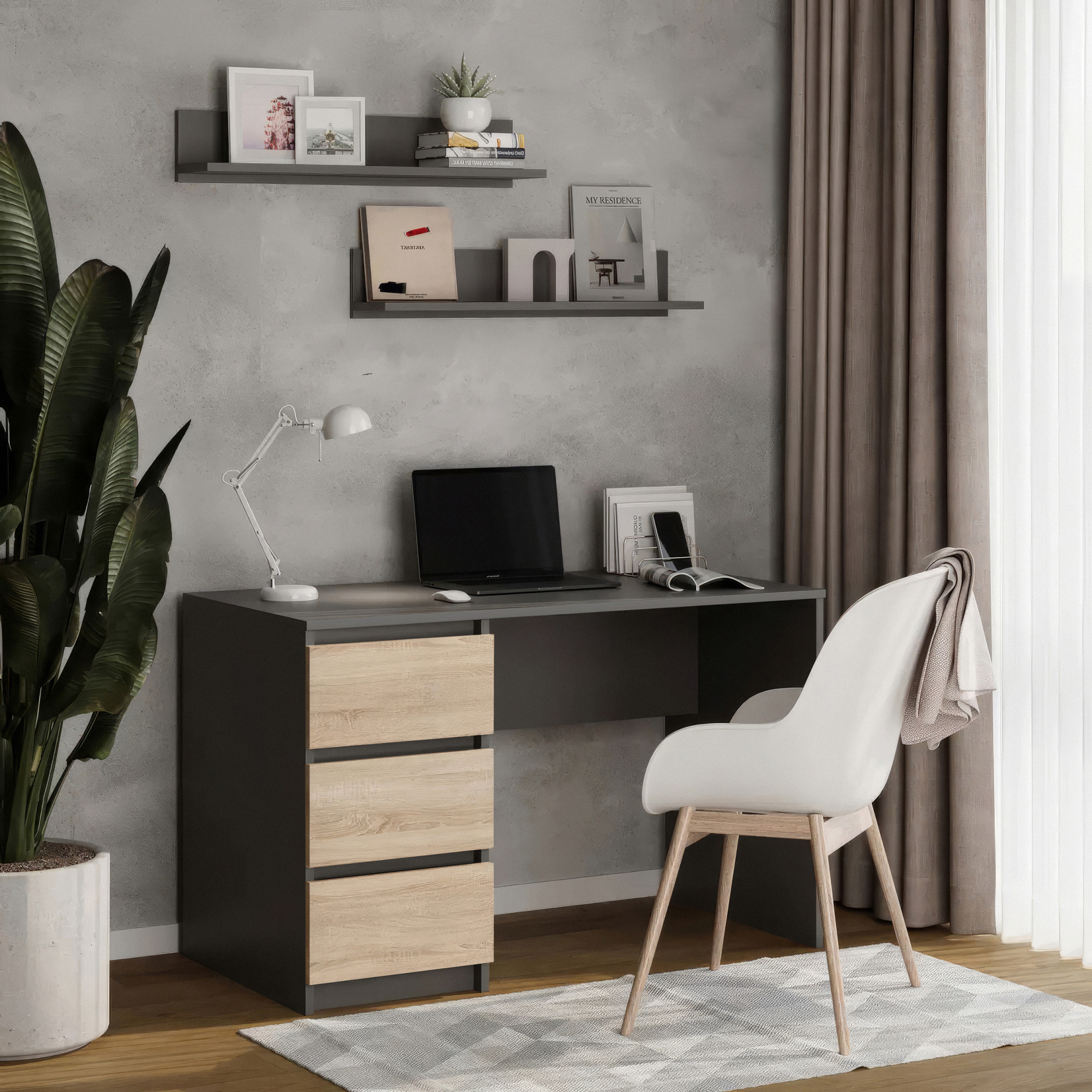 Письмовий стіл на 3 шухляди без ручок No Brand FT-224 Left 1200х600х750 мм Дуб Сонома-антрацит (24766813)