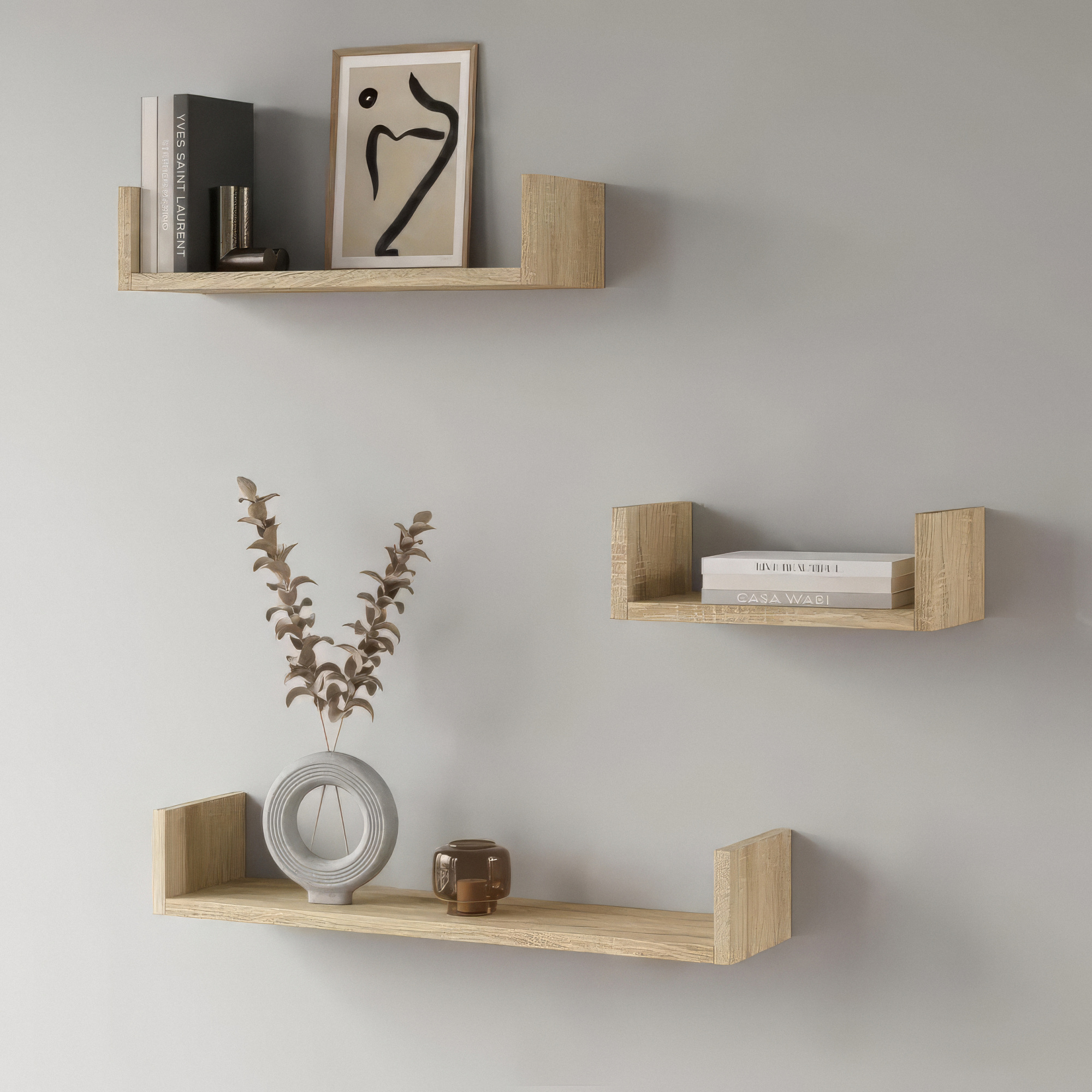 Комплект настінних полиць GT-37 — це стильне та універсальне рішення для організації простору у будь-якому приміщенні. До набору входять три окремі полички різної ширини, які можна розмістити у довільному порядку — горизонтально, каскадом або асиметрично. Полички ідеально підходять як для декору, так і для зберігання дрібних речей, книг, аксесуарів чи елементів інтер'єру.