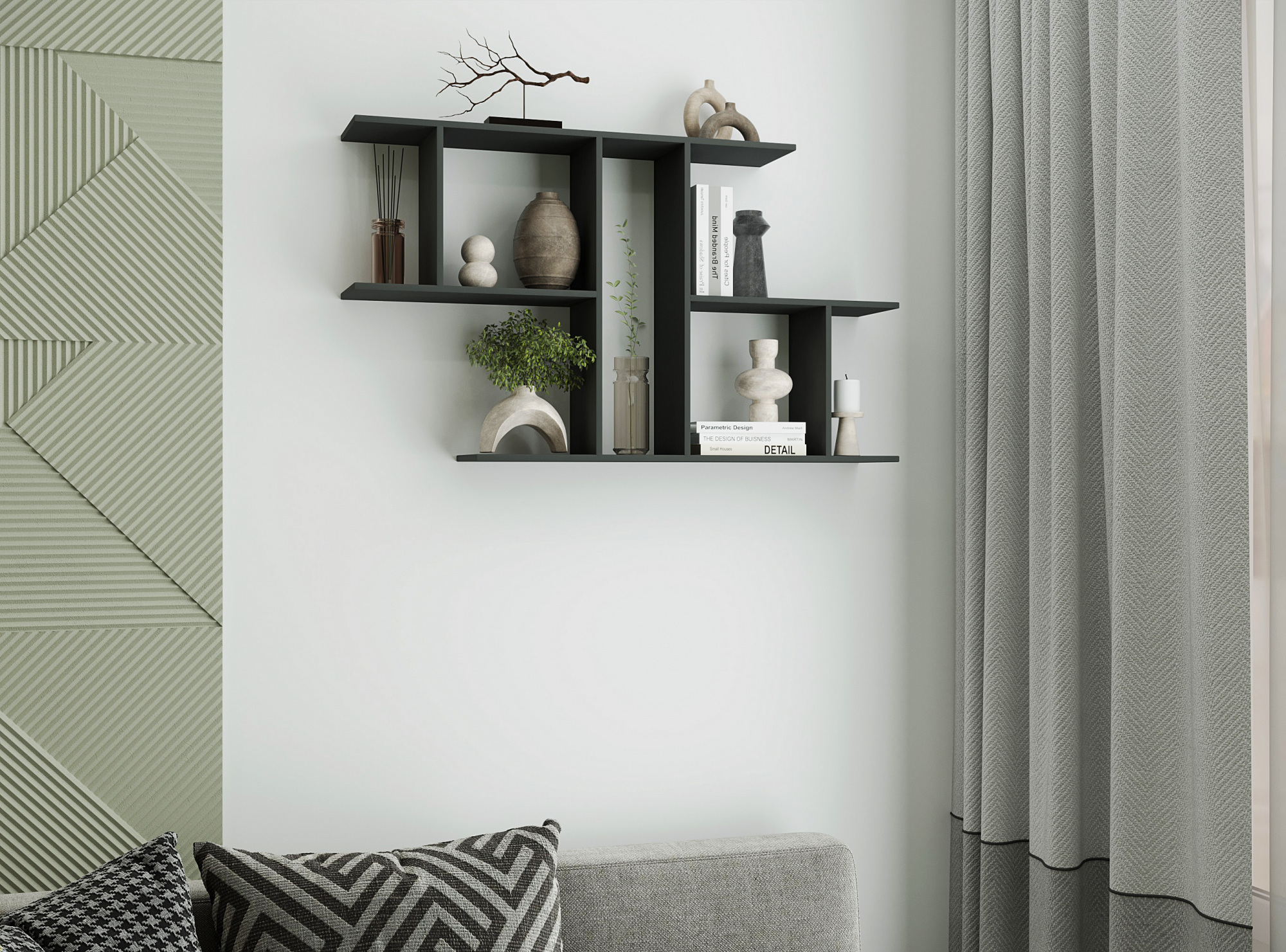 Настінна полиця FT-8 — це функціональний і декоративний елемент інтер’єру, що поєднує практичність із сучасною геометрією. Вісім окремих секцій дозволяють раціонально організувати простір для зберігання книг, декору, аксесуарів або сувенірів. Завдяки настінному кріпленню полиця не займає підлогового простору, залишаючи приміщення візуально легким і охайним.