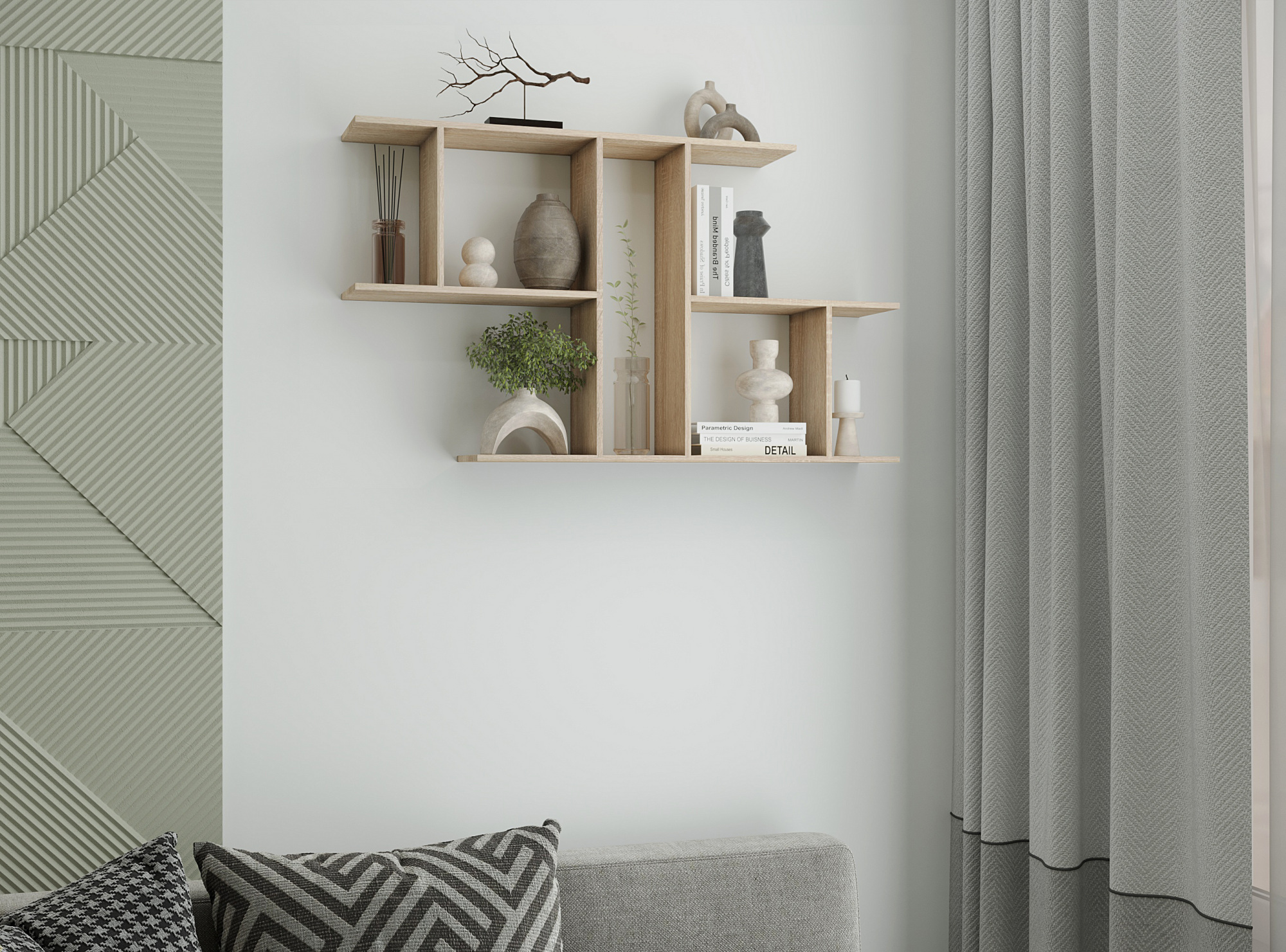 Настінна полиця FT-8 — це функціональний і декоративний елемент інтер’єру, що поєднує практичність із сучасною геометрією. Вісім окремих секцій дозволяють раціонально організувати простір для зберігання книг, декору, аксесуарів або сувенірів. Завдяки настінному кріпленню полиця не займає підлогового простору, залишаючи приміщення візуально легким і охайним.
