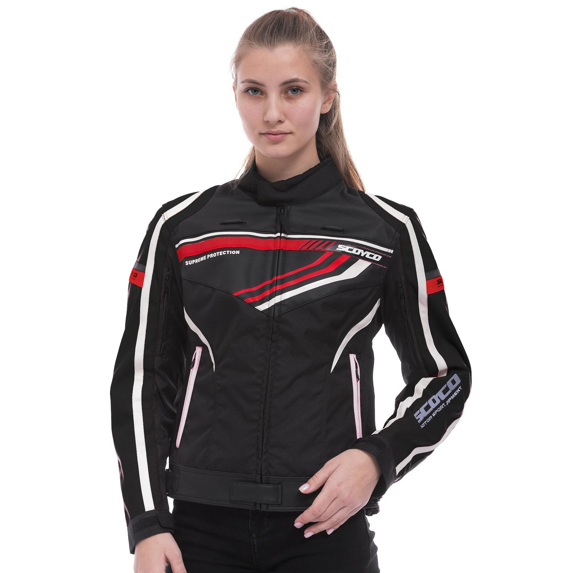 Опис Мотокуртка текстильная с защитой женская SCOYCO JK37W L-40 Черный-красный PT1594