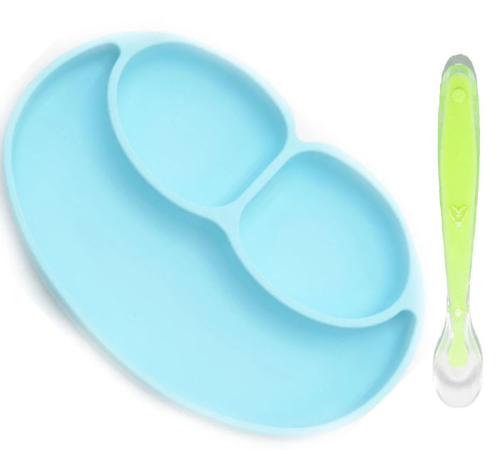 Опис Набор силиконовая тарелка коврик и Силиконовая ложка VOLRO 2 шт Голубой/Салатовый (vol-1716)
