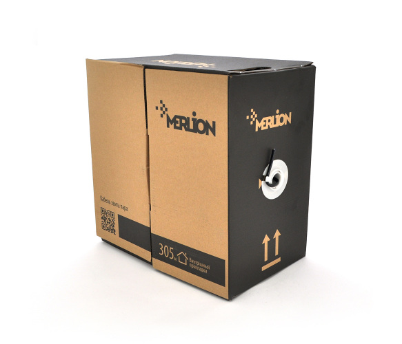 Кабель витая пара Merlion КНП 4*2*0.54 UTP-cat.6 (UTP CCA биметал наружный) бухта 305м белый