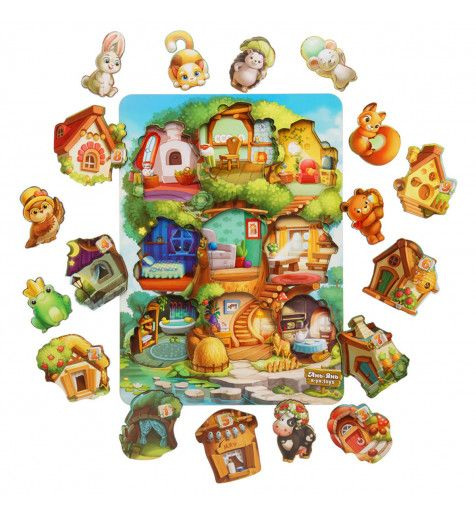 Деревянный двухслойный вкладыш станет отличным подарком для ребенка. В наборе 18 деревянных вкладышей - 9 фигурок животных и 9 домиков для них. Главная цель для малыша - по картинке подобрать каждому животному его дом. С помощью такой игры ребенка можно знакомить с животными разных видов, развивать мелкую моторику рук, логику. Размер - 32х23 см.