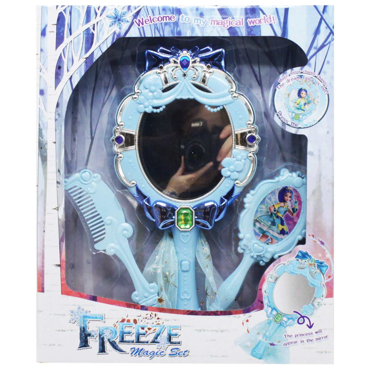 Оригинальный подарок для юной леди - парикмахерский набор. В комплект входит: красивое музыкальное зеркальце, гребешок и расческа. Зеркальце оснащено звуковыми и световыми эффектами - воспроизводит множество мелодий, также во время работы включается подсветка и на зеркальце загорается красивый рисунок. Работает на батарейках (не идут в комплекте). Набор выполнен из качественного и безопасного материала.