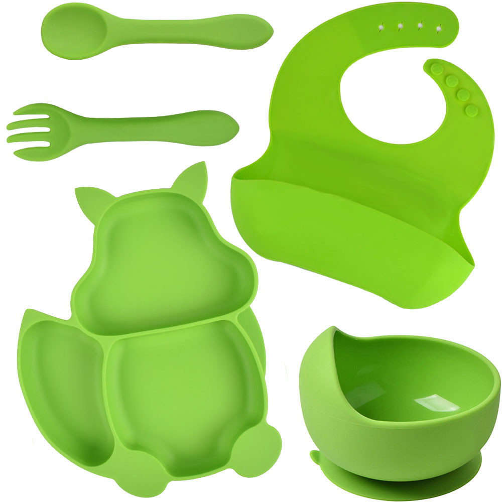 Набор силиконовая тарелка форма белки слюнявчик тарелка для первых блюд ложка вилка 2Life Y7 5 шт Зелёный (vol-9752)
